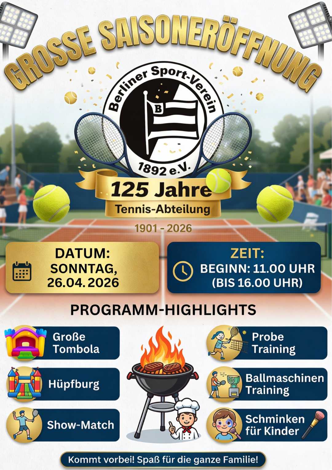 Die Tennisabteilung wurde 1901 als eigenständige Abteilung innerhalb des Berliner SV 1892 gegründet. Von unseren über 800 Mitgliedern sind über 200 aktiv in Mannschaften sportlich tätig. Wir bieten 9 gepflegte Sandplätze und 2 Plätze mit gelenkeschonendem Gummi-Granulat-Boden in einer festen Halle, die sowohl im Sommer als auch im Winter bespielbar sind. In der Wintersaison stehen noch 4 weitere Plätze in 2 Traglufthallen zusätzlich zur Verfügung.